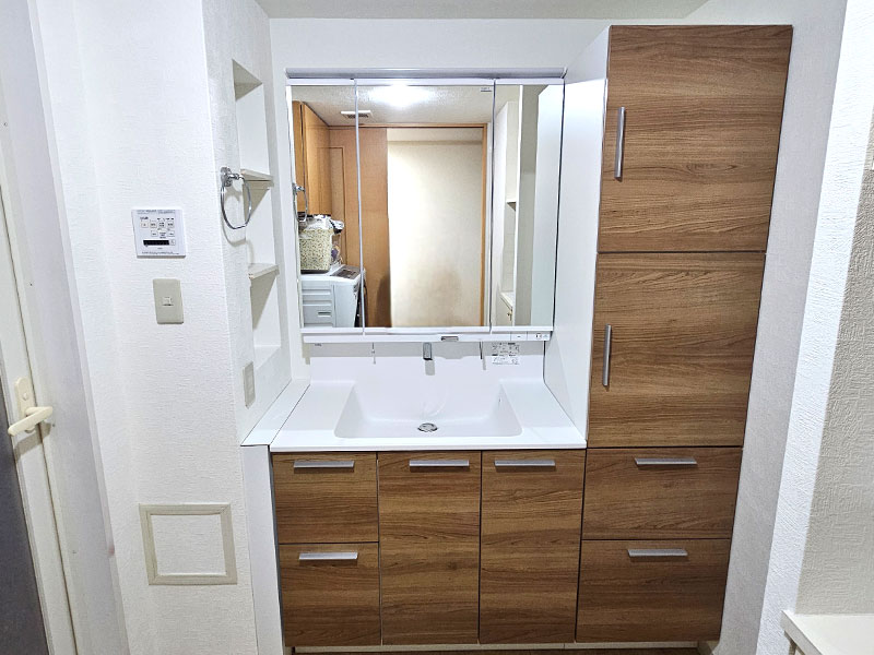 埋め込み収納から棚板へ交換!収納力UPですっきりと仕上がった洗面室